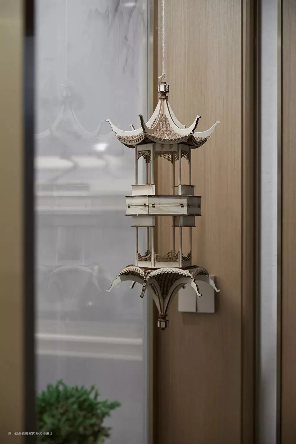 ▲角楼造型的壁灯,布置在这个空间下,也增添了几分诗意的情趣气息。