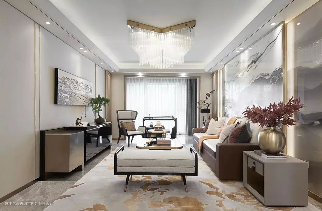 在这套80来平的新中式风格装修案例中,整体空间以现代儒雅的端庄基调下,布置上诗意情趣的家居软装,营造出一种禅意雅韵的雅致与情趣气质。