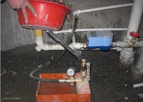 2)那么关于水管打压相关事项就介绍到这,我们友情提示一下:安装完水管以后一定要对它进行测压,金属及其复合管试验压力0.6MPa,稳压10分,管内压力下降应不大于0.02MPa,无渗漏;塑料管试验压力0.8MPa,稳压20分,管内压力下降应不大于0.05MPa,无渗漏。这才可以使用。