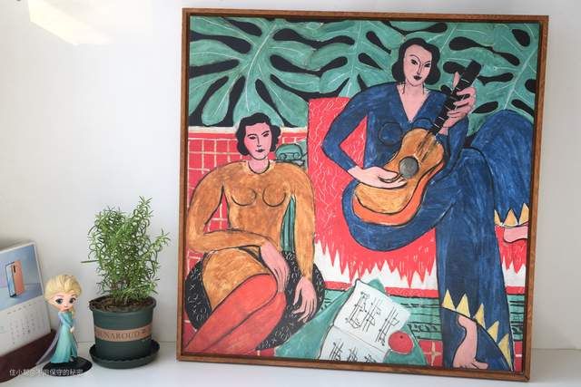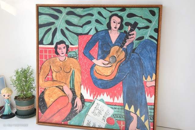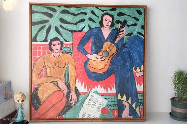 新家还在装修中,我原本想让单调的墙面多一些色彩,亨利·马蒂斯的画作刚好合适。于是入手了这一副“抱吉他的女孩”。画的尺寸是60cm*60cm。