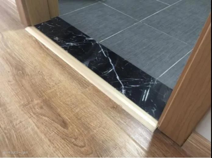 首先讲一些过门石,昨天我们说过过门石最好选择天然石,硬度高不易划痕,那么在卫生间施工的时候也要注意做好防水,过门石底下刷好防水,侧面两边跟瓷砖接缝,包括跟外面接缝处刷好防水,这样就不会出现渗水的情况了。所以说卫生间的过门石还是要刷一下防水,用堵漏王之类的把它封边封好就可以了。