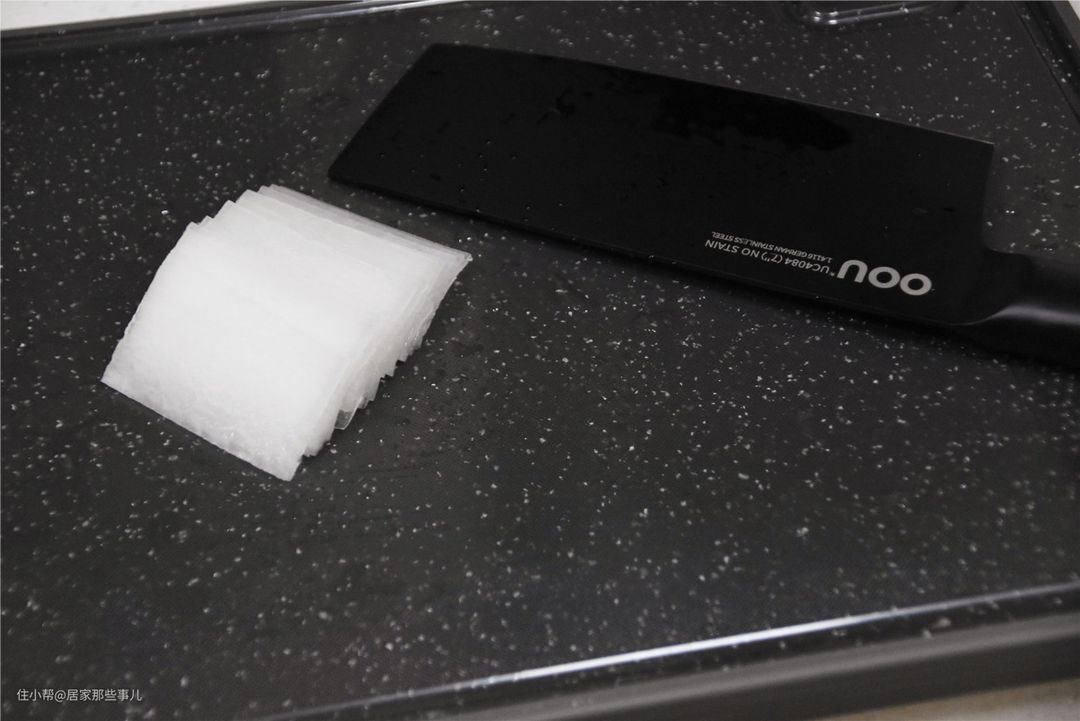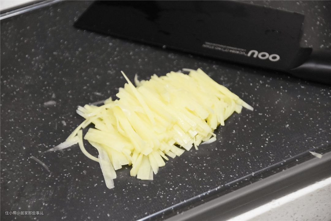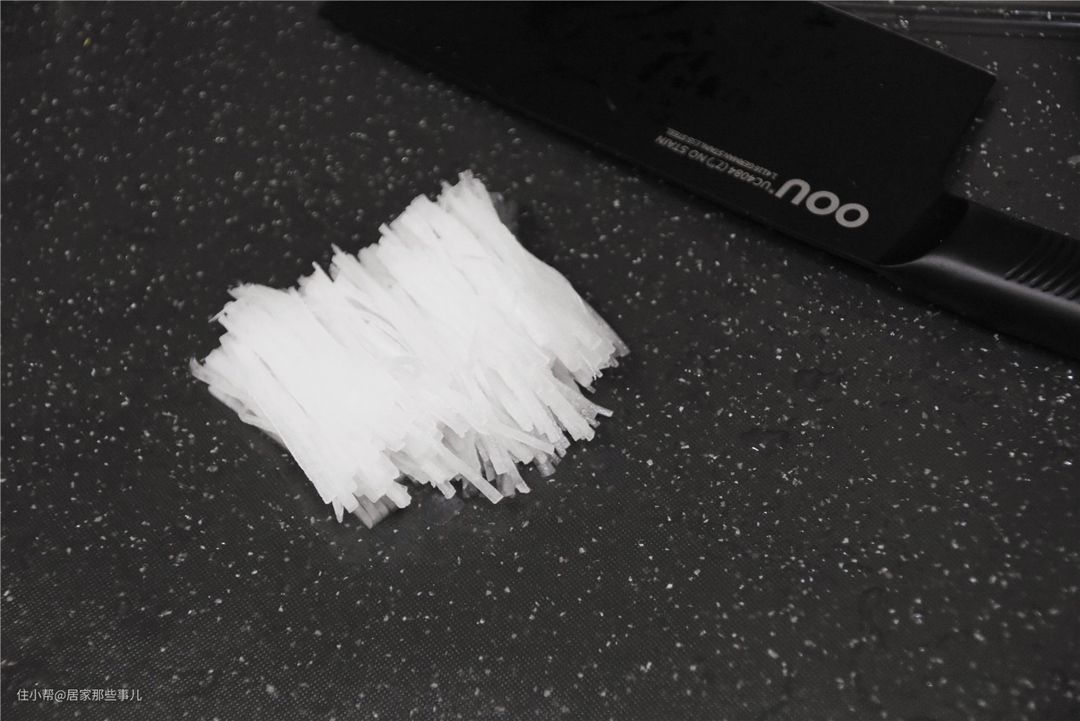 土豆丝有一些切失败了,所以又找来了萝卜切丝,切片、切丝效果流畅,而且萝卜丝没有翻车。