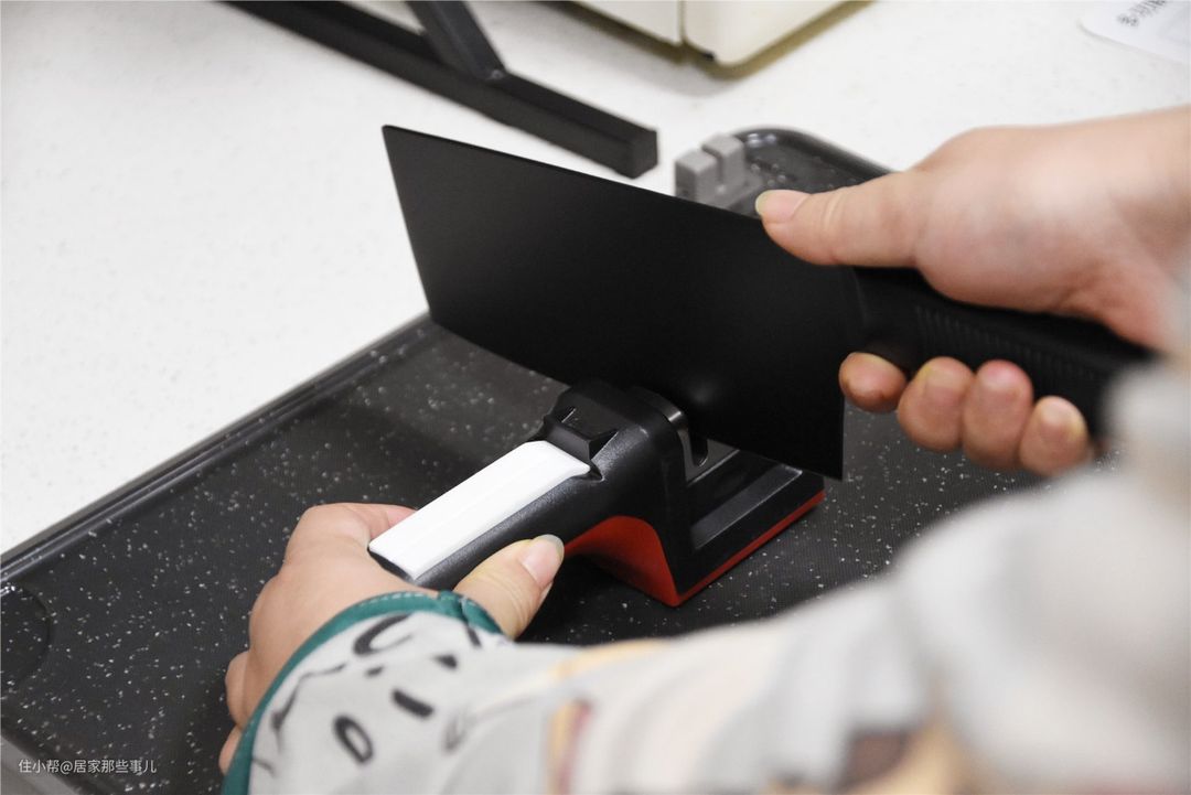 磨刀器我想应该是每个家庭所必须的,无论刀具的好坏长期使用都需要对刀具进行研磨,在这个小巧的磨刀器上有两个开口,分别为钨钢粗磨以及陶瓷细磨,修复和锋利再造,保证刀具长期锋利。