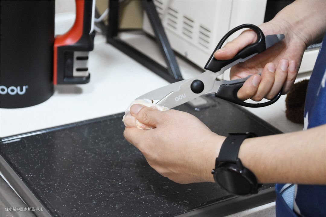 剩下的两个小家伙为多功能剪刀和磨刀器,在家做鱼和解刨整鸡这只多功能剪刀就有用了,剪切肉类和蔬菜都非常速,特别是鸡腿肉上的皮,用剪刀处理鱼鳞也是一把好手,除此之外它还能开啤酒瓶盖、开核桃以及其他想不到的用途。