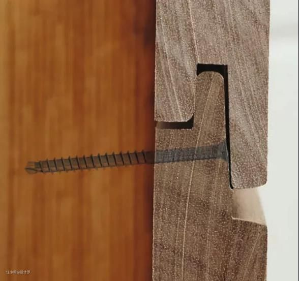 对于室外这种密集型的板材拼接,是利用自钻螺丝穿过榫舌来安装的,螺钉头隐藏在下一块板的凹槽中,这样就能避免破坏完成面的整洁性。