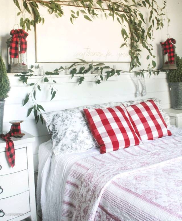 不过,也别太执着于传统形式的圣诞花环,用枝条拗出造型,打造美美的床头背景。▼