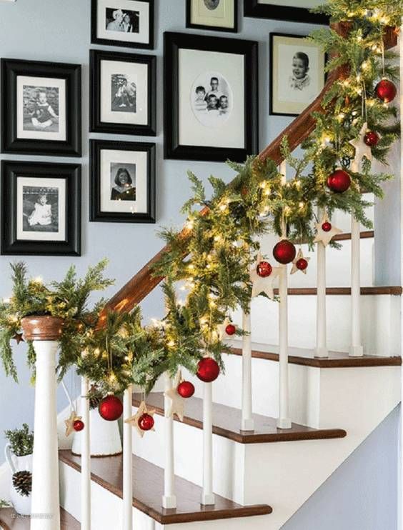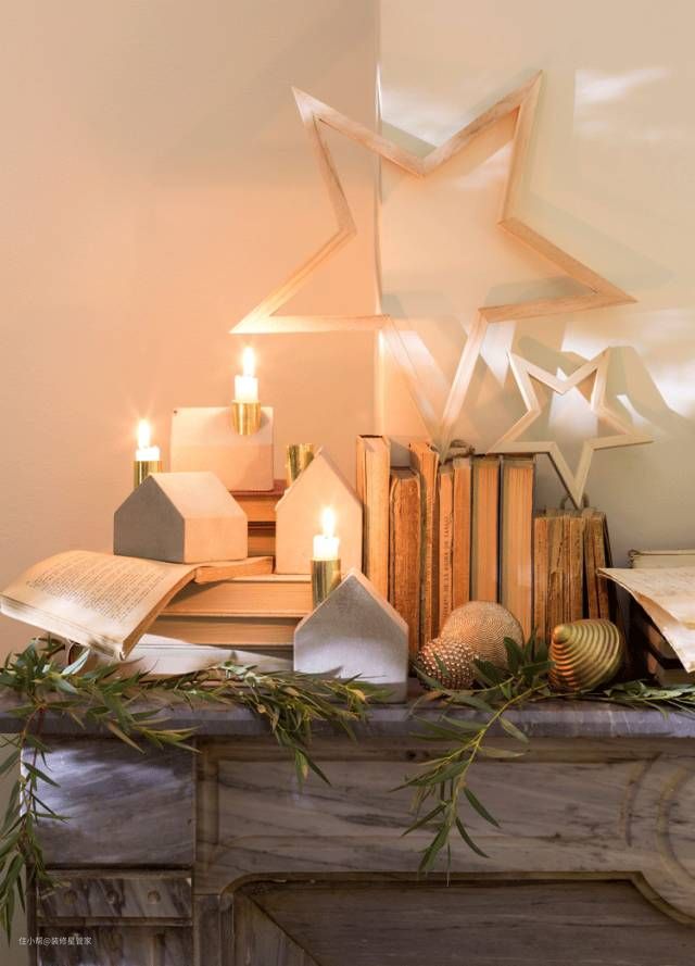 或者是在楼梯、门洞用松枝条缠绕装饰,挂一些装饰品,如彩灯、星星、雪花等。▼
