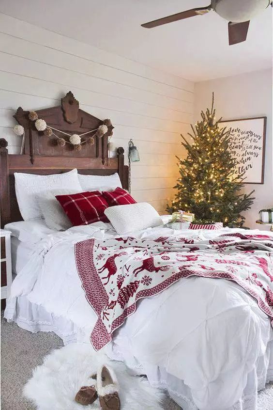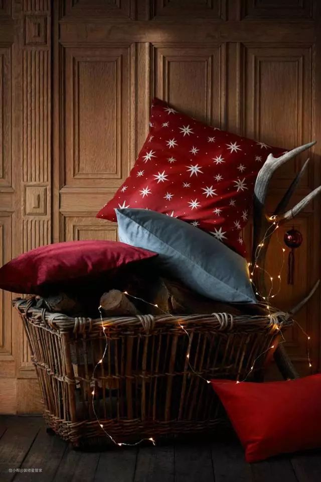 红、绿、白一直都是圣诞的经典配色,绿色象征的是圣诞树,红色有着喜庆的寓意,在家布置红色的物品,可以让人感受到节日的气氛。▼