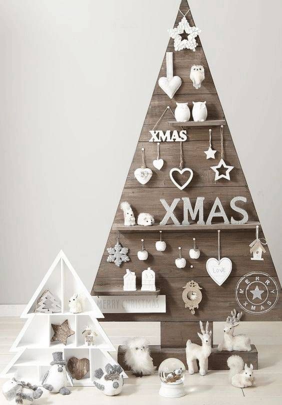 也可以选择更日常的松树造型置物架、梯子装饰,快到圣诞节的时候,可以摆放一些应景的饰品。▼