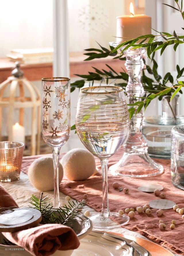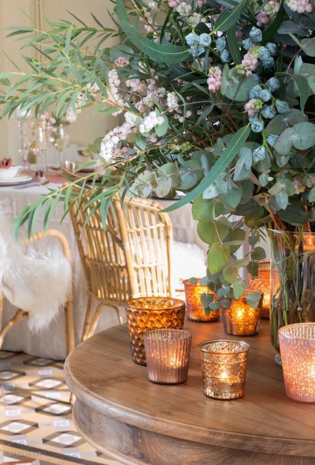 餐桌上可以点上香熏蜡烛、水晶蜡等,摇曳的圣诞烛光,为家更添一份温馨与浪漫。▼