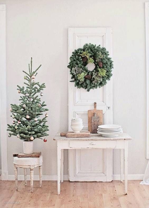 把圣诞树缩小放在桌上或者窗台上,墙面就用圣诞花环,多重装饰效果更佳。▼