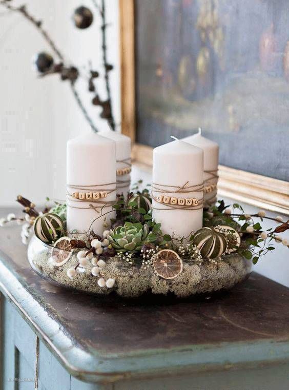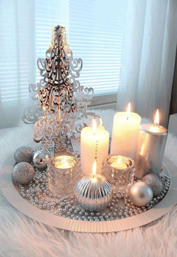 蜡烛也是圣诞节的重要角色,多种摆件组合在一起,BlingBling的圣诞树和金属球放在托盘中,自己制作的烛台更是别具匠心。▼