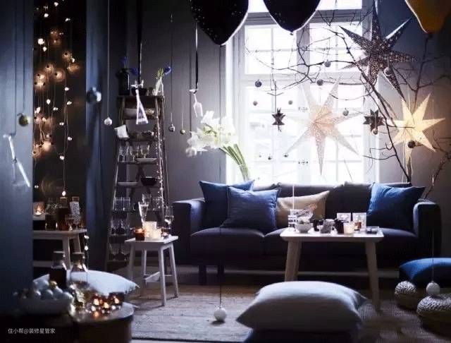 在家里光源固定的情况下,给吊灯换一个灯罩,或是挂一些串串灯,圣诞节一过再收纳好它,来年过节又可以派上用场。▼