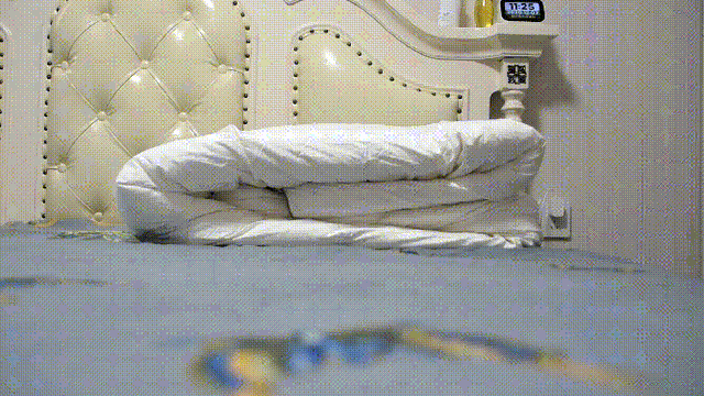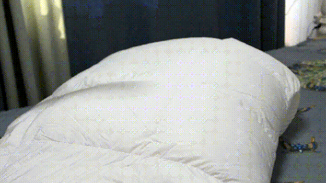 弹性如何可以通过下面的动图来看,整个被子的蓬松度和弹性都非常高,而且羽绒服的弹性是可恢复的,不用像棉被一样盖得时间久了还需要去弹棉花。