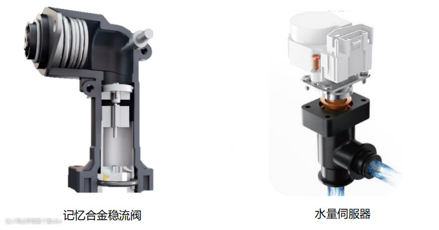 除了水量伺服器外,目前还有品牌研发出了记忆合金稳流阀,当水压、进水温度变化时, 记忆合金通过伸缩微调水量满足水温恒定,同时还配合水流量传感器,实时采集流量数据,当采集到的流量出现波动时,能在数十毫秒内给热水器CPU提供数据,控制热水器迅速反应调节燃烧功率,实现出水水温波动<1℃。
