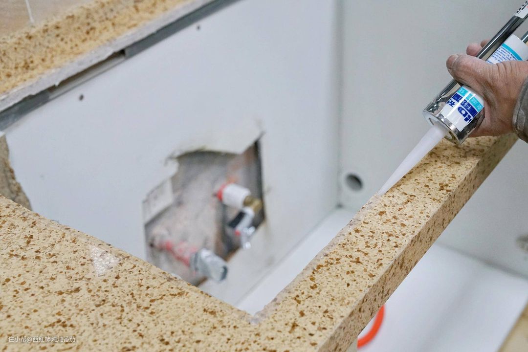最后在台面上打上一圈玻璃胶,然后把预装了水龙头的机器放上去,再连接好水电,就可以试漏试机了。其实到这里,安装也算是完成了 ▲