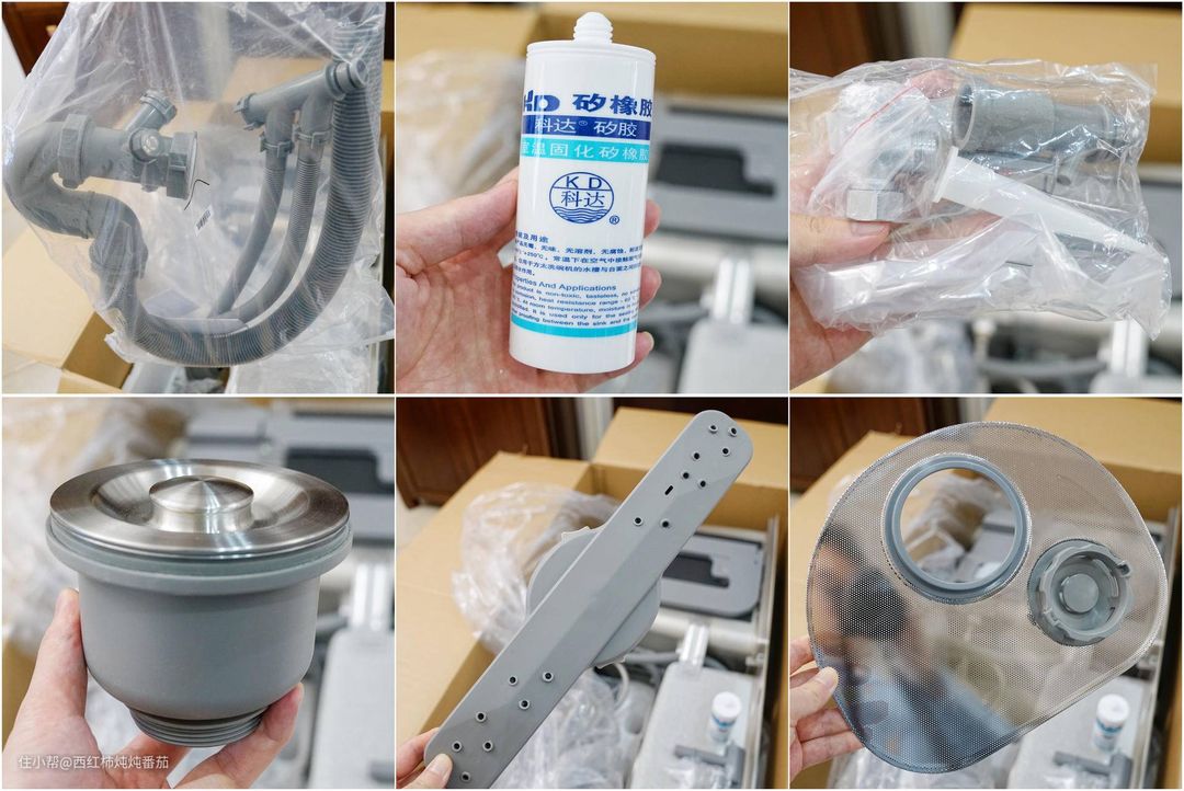 其中配件部分包含:下水组件、喷淋臂、渣篮和玻璃及其相关配件 ▲