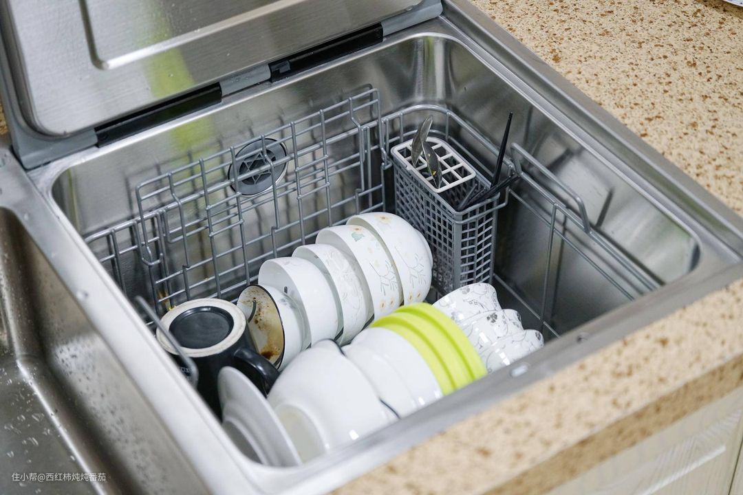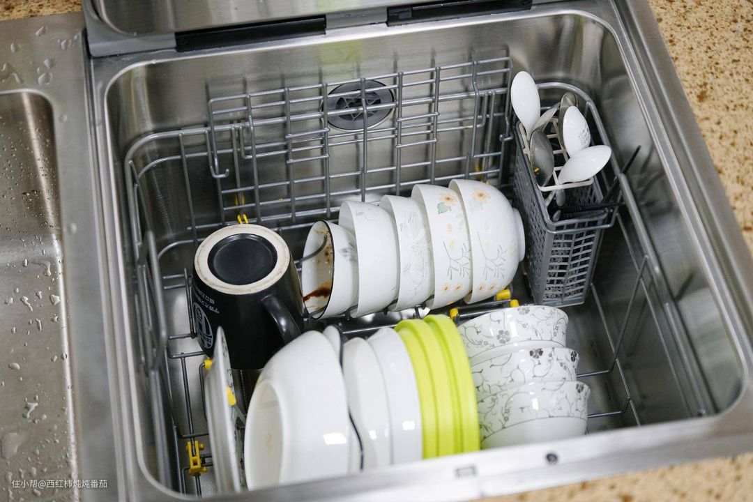 ②有的朋友可能无法理解这种设计的优势,想象一下:如果碗里有食物残渣,可以在水槽简单预冲洗一下再放进洗碗机,就会方便很多;