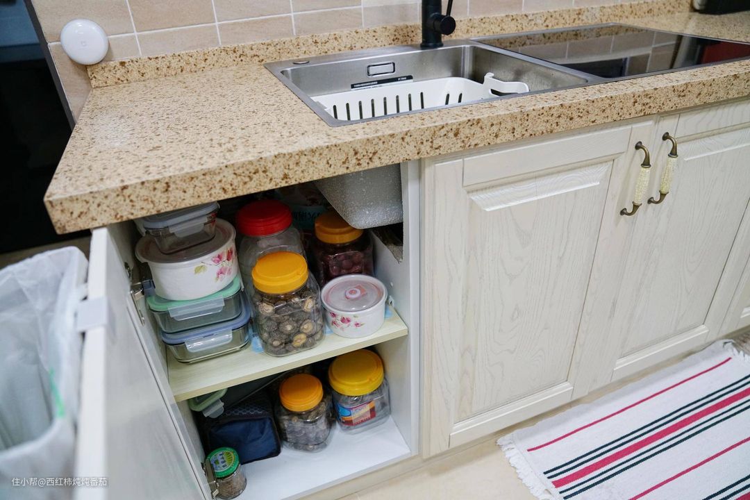 因为涉及台面的拓宽,所以左侧橱柜被占用了一部分。但是左侧几乎不影响原先的正常储物功能,这一点非常棒 ▲