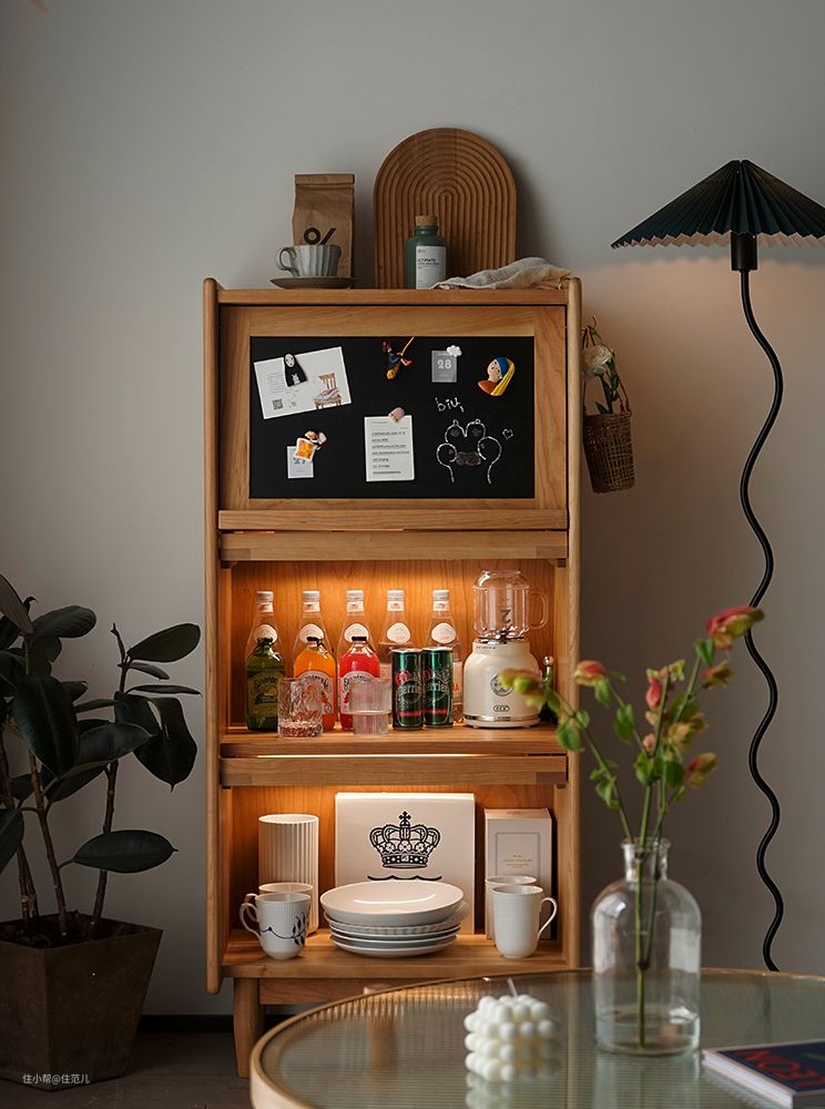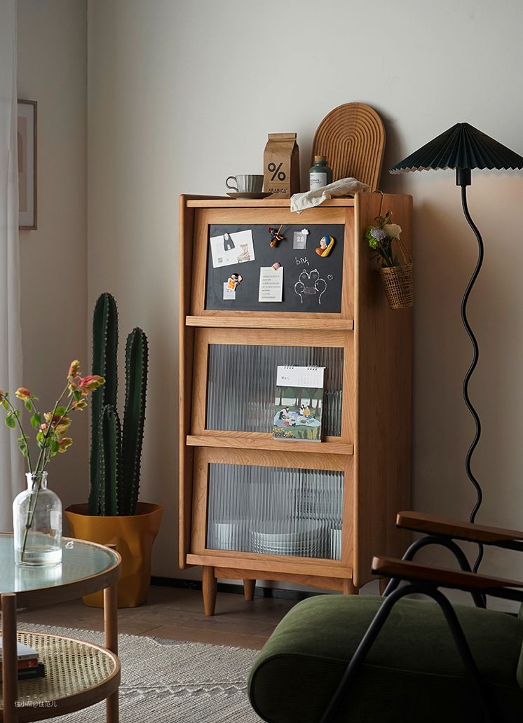 玻璃柜+木质柜体,没有大柜子的拥堵感,格外适合放在卧室、客厅餐厅的角落里。