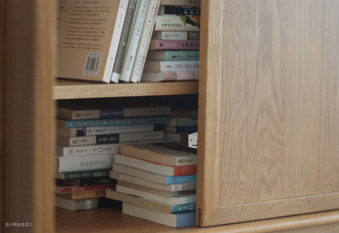 书柜如果没有柜门简直是灾难,尤其对于国内的空气质量来说更是如此。他们家书柜,只要有书的地方,就有柜门。