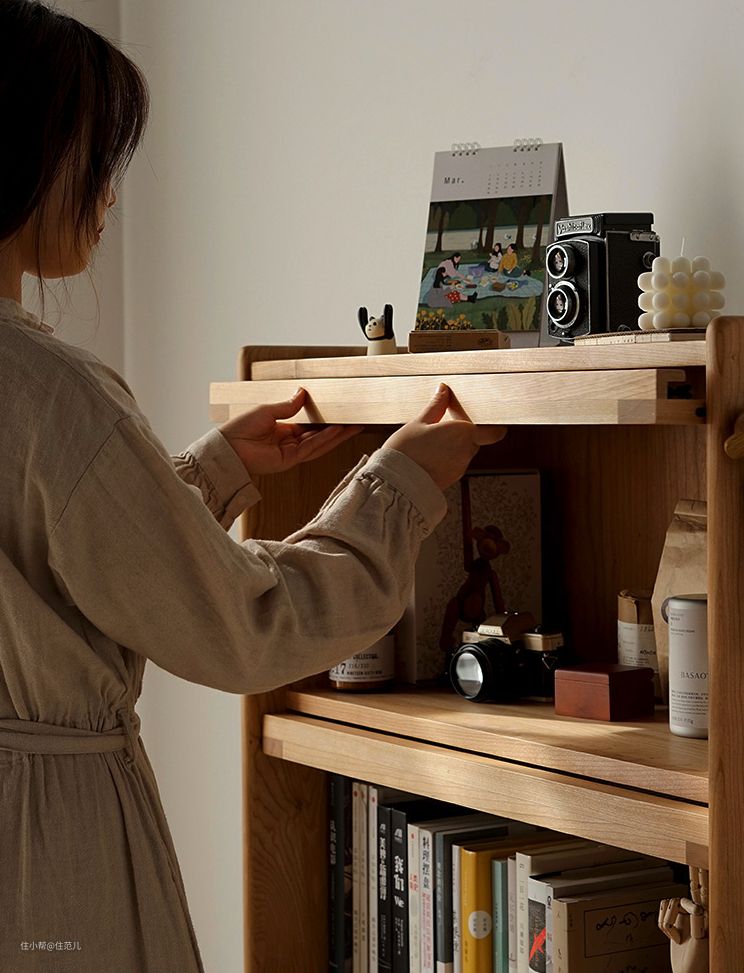 光阴木器是家偏日式风格的实木家具店。他们家书柜最大的特点是小巧、储物空间丰富。
