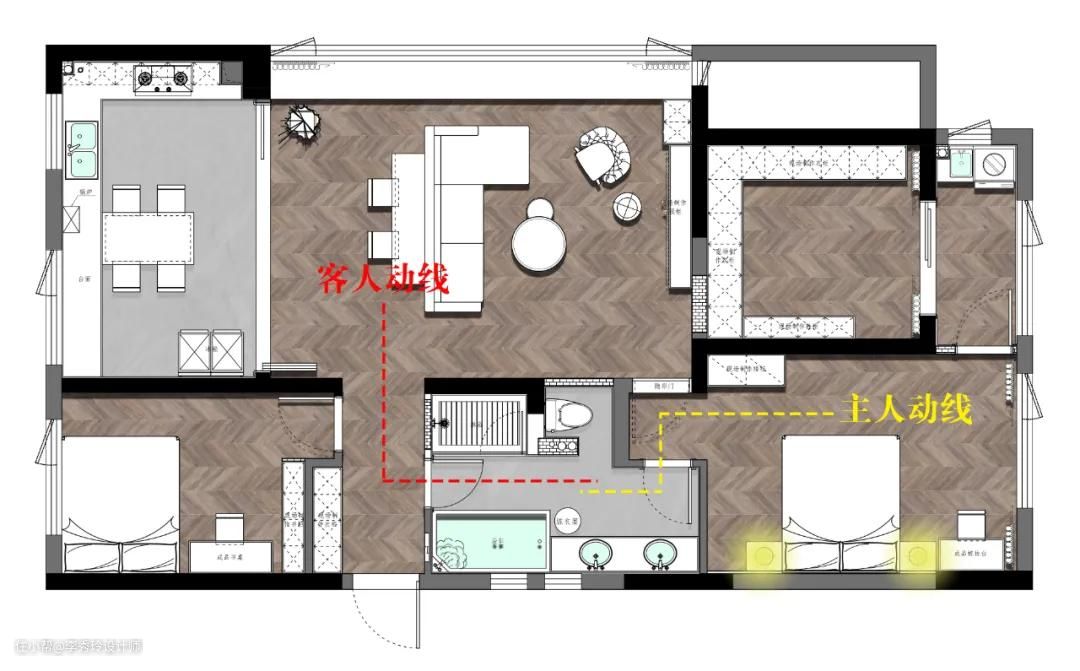 120+㎡的房子,如果家居动线设计不合理,那么就会造成生活上的不便,在家活动的时候会走很多冤枉路。