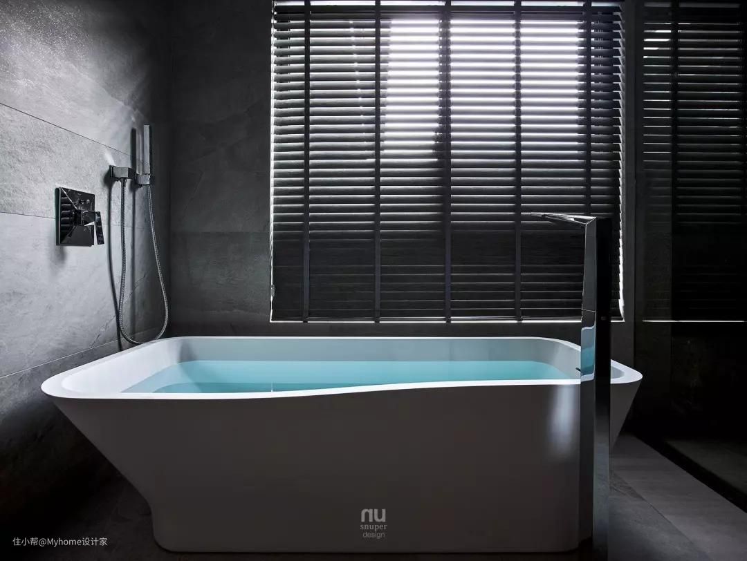 在卫生间的配置及安排上,首先将迎窗面留给泡澡区,