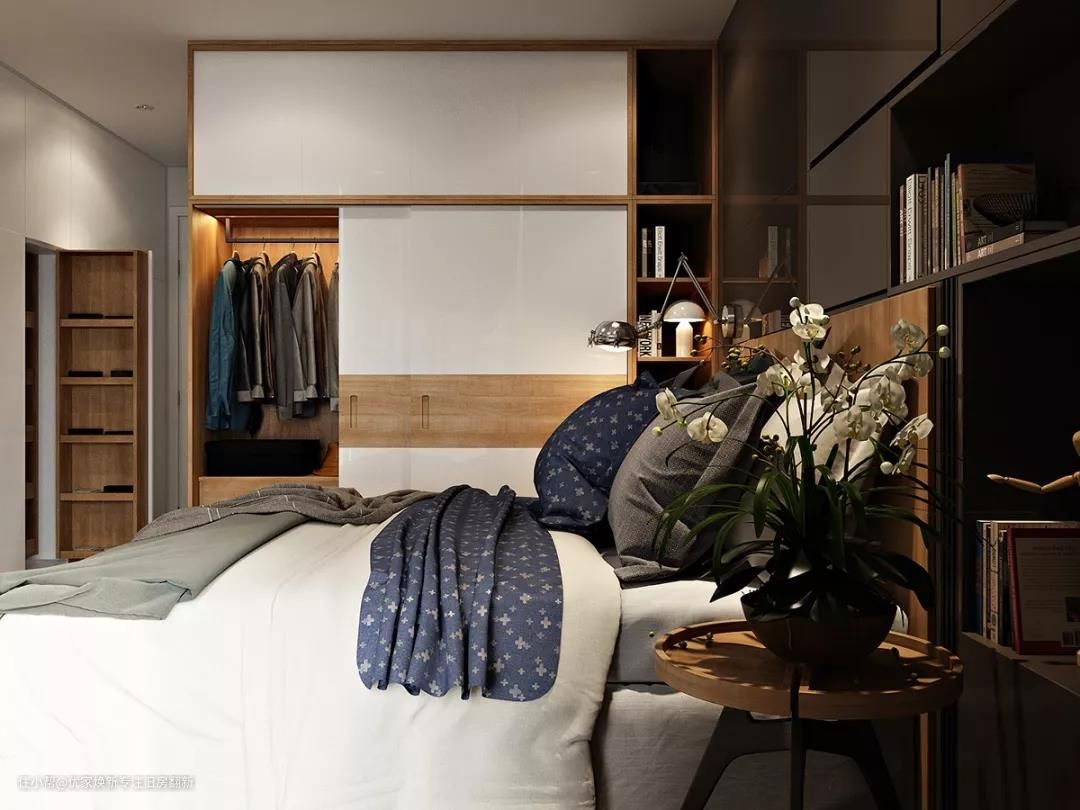 卧室衣柜,绝大多数人都会选择定制衣柜,定制衣柜更贴合墙面、顶面、地面,可以更好的衔接空间其他造型, 就连边边角角都可以充分利用起来,空间一点也不会浪费。而且造型可以很丰富,可塑性强,可以更加贴合业主的收纳需求。色彩上也可以根据不同人的审美进行搭配,相比成品柜更灵活。还有最重要的一点就是板材可以自己选择,可以让环保系数更高。