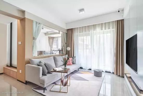 流行的隔断中,玻璃和半墙是不影响光线的两种方式。主卧和衣帽间、卫生间干区和湿区、客厅和书房之间都可以用玻璃隔断,玄关和客餐厅间可以用半墙隔断。