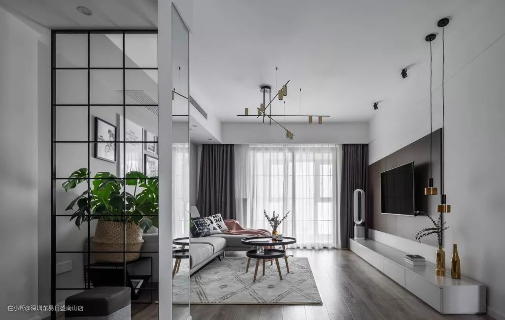 宽大门洞+黑框玻璃推拉门是这两年的网红款,常用在厨房和餐厅之间,打造一个半开放式厨房。门洞高还能让室内空间更显开阔,无形拉高层高。