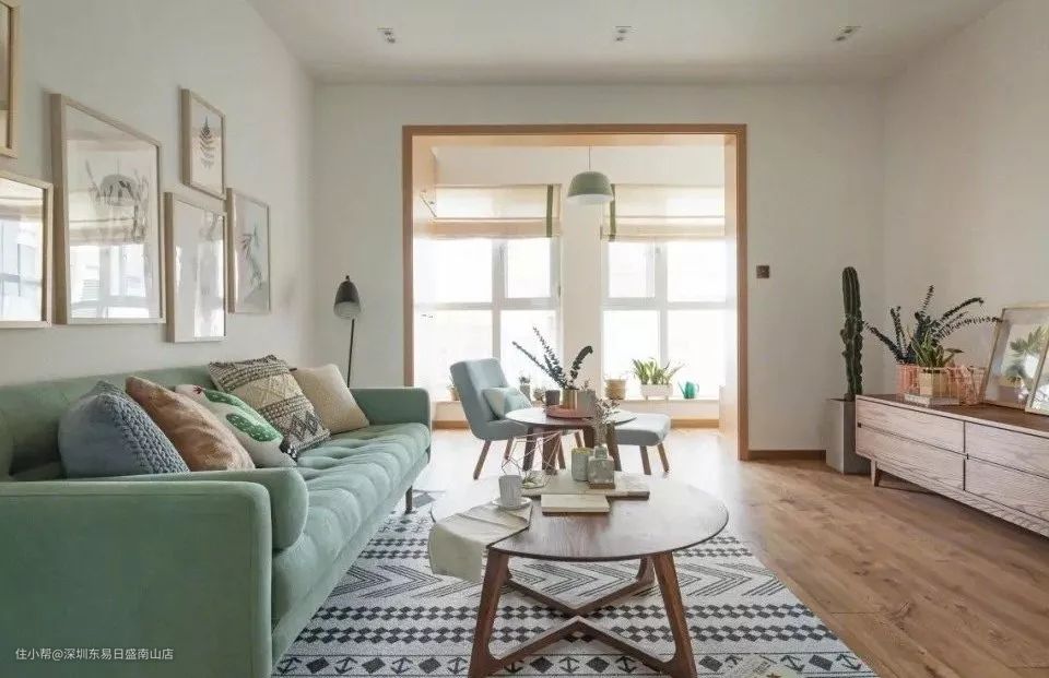 将墙体打掉后,开放式格局能最大化引入光线,巧妙利用软隔断也可以自然分区。