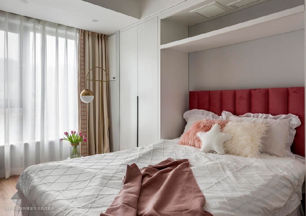 少女心的主卧,富有温度的家居陈设,这是大公主所憧憬的温暖小窝。金色的点缀,粉色与白色的衔接,让主卧更加温馨浪漫,让空间更加协调。