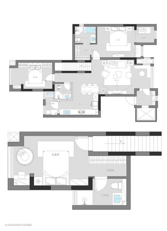 二楼是虽然是女儿的一个人的空间,也满足简单使用的家具需求,独立的书桌、衣柜。女孩子都会有很多的漂亮小裙子,独立的衣柜,也从小也能锻炼自己整理衣物的能力。