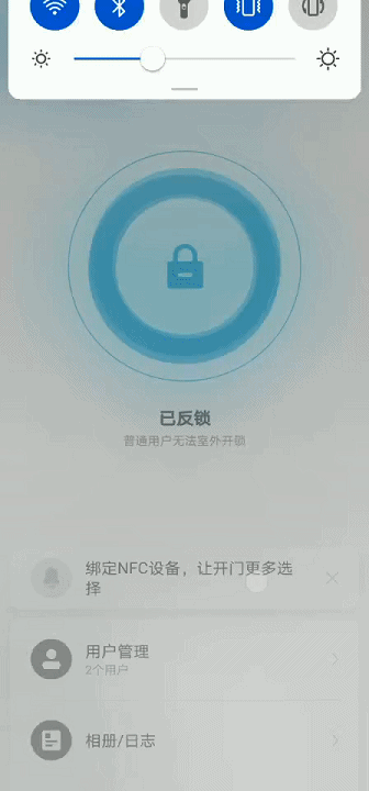 蓝牙开锁和homekit开锁,要在手机蓝牙连接智能门锁的情况下使用,比方说周末朋友来我家聚餐,来的时候我在收拾东西不方便开门,就可以长按圆圈里的锁进行解锁,5秒无操作就会自动上锁。homekit开锁会更方便一些,喊声“Siri开锁”就行了。