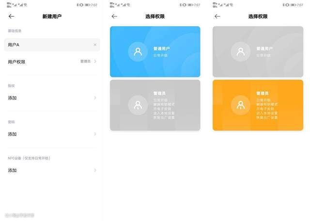 第一个添加的用户默认为管理员,此外还能添加其他用户,可以设置为普通用户或管理员。除了日常开锁外,管理员还掌握着解除布防模式、开电子反锁、进入本地设置以及恢复出厂设置等权限。因为目前主要是我和对象两人住,父母很少来,所以只添加了两个管理员。我尝试了一下,管理员可以添加多个,具体上限不确定,但是一家五六口是没有问题的。