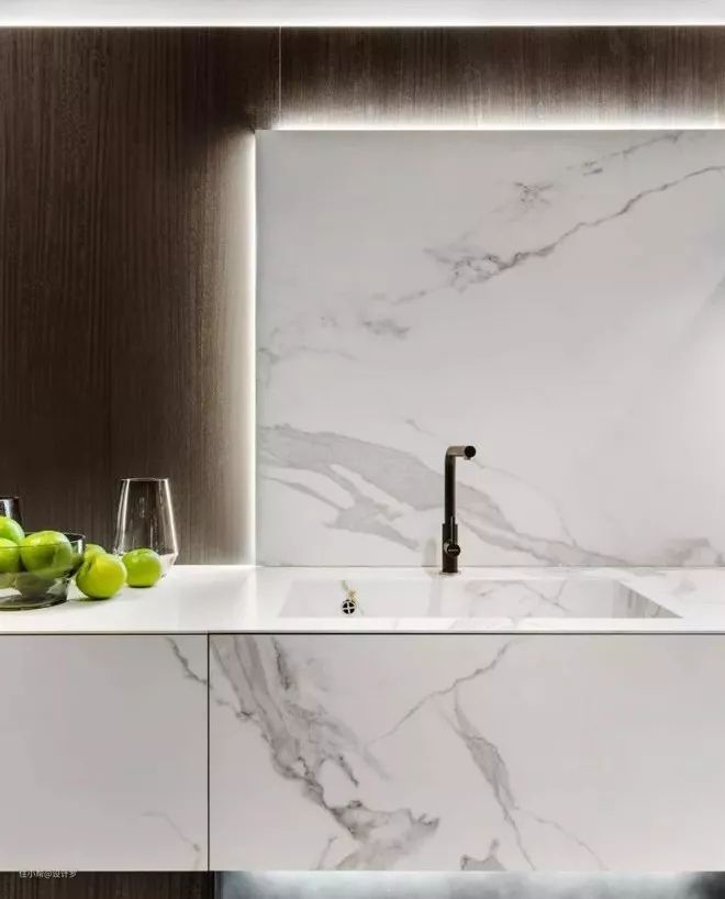 相比于传统材料,岩板逼真的仿石3D纹理、细腻质感、坚硬而柔韧耐磨的特质,强势上位。复杂多变的颜色和透光的材质,使其从传统进阶到建筑领域,从家具陈设到总体设计多方面完美融入。