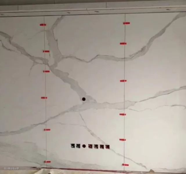 墙面岩板施工流程:基层处理→弹线定位、板材切割→墙面刮胶→墙面刮胶→薄板铺贴→调平器安装→调平器安装→表面清洁与保护