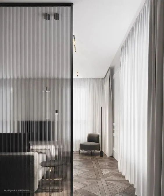 长虹玻璃的特殊质感也使它成为妆点空间的小能手,这种透光不透视的朦胧感刚好作为隔断来划分空间,既不会挡住光线,还能增加美感。