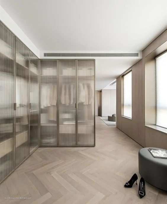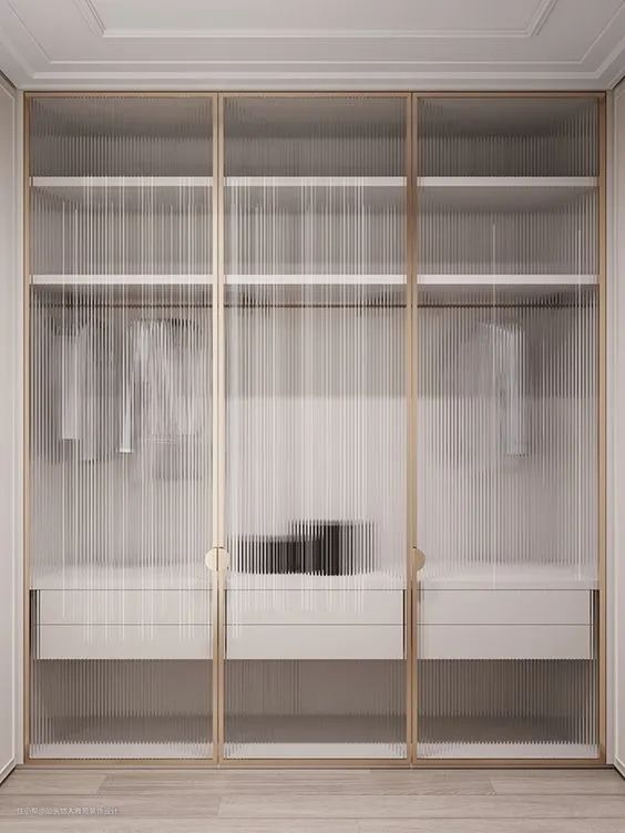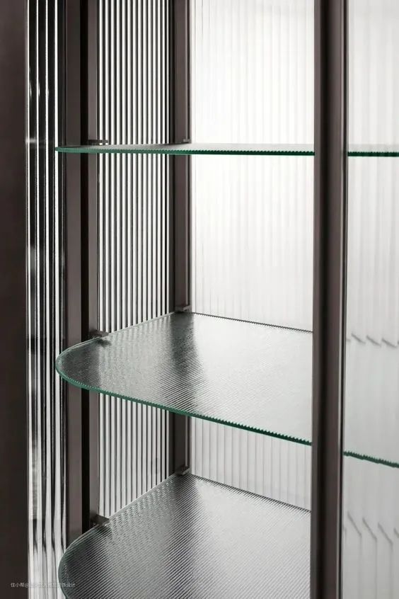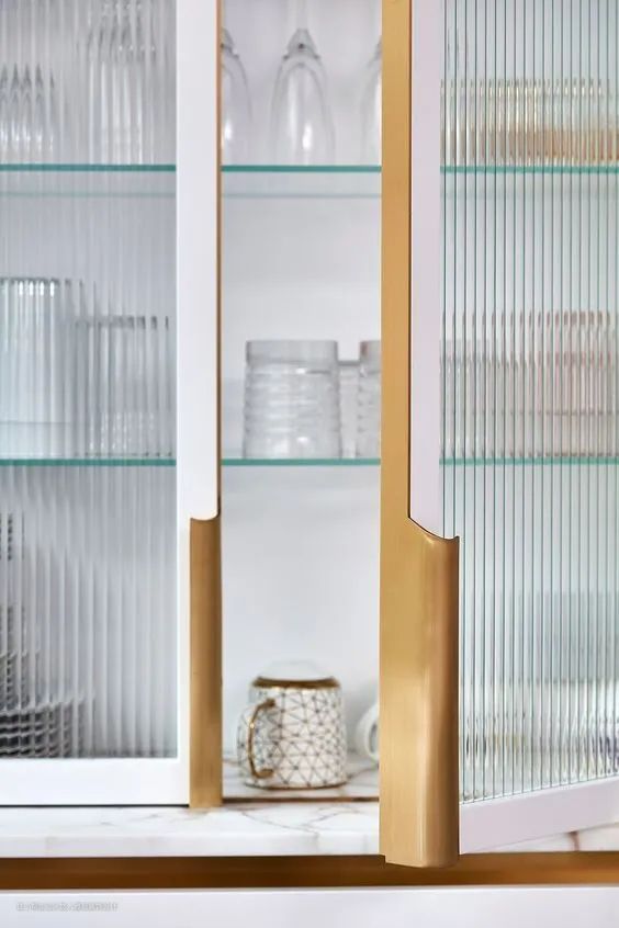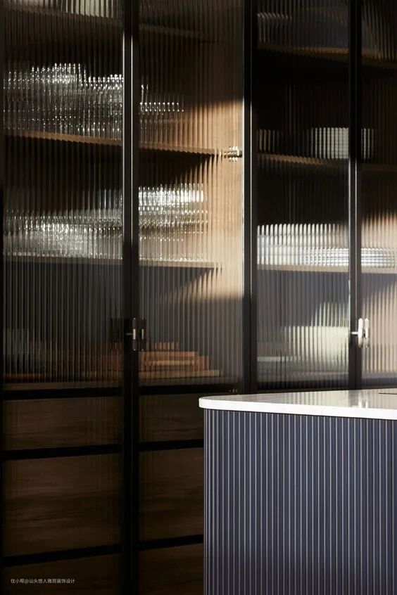 时尚新潮流 同样都是压花玻璃,相比起香梨、钻石、磨砂玻璃,长虹玻璃的竖直线纹理更具有简约的几何美感,结合当下流行的极简风格、轻奢风格更为适合。