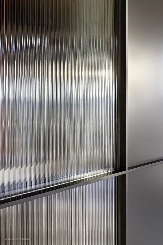 长虹玻璃是竖条纹压花玻璃的一种,表面看起来有点模糊,可以起到半遮挡的作用,又能保持空间通透性,所以现在越来越多人家里装修选用这种玻璃。