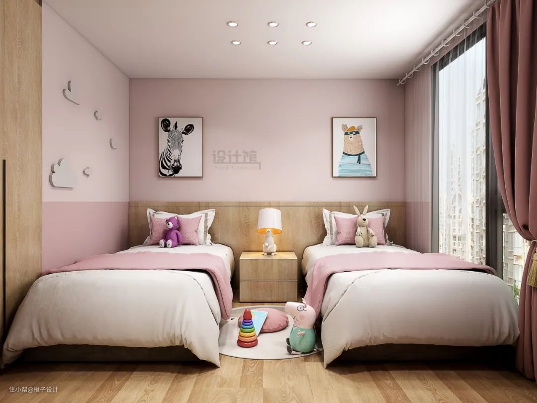 对于两个宝宝性别一样的家庭,因为没有什么性别差异方面的忌讳,所以儿童房的布置方案就有比较多的选择,比如上下床、双床布置等,可以根据儿童房空间的大小来选择设计。