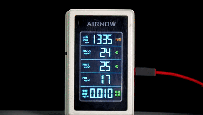 从这里可以确认,当空气在松下F-93C0PX空气净化器里跑了一圈之后,携带的各种污染物真的基本消失了。而在开启净化器一段时间之后,可以看到手持式空气质量检测仪显示的度数在快速的下降(为了确保动图不会太大,此处进行了适当的快进处理)。同时鼻子也能非常明显的感觉到室内的异味正在减少。