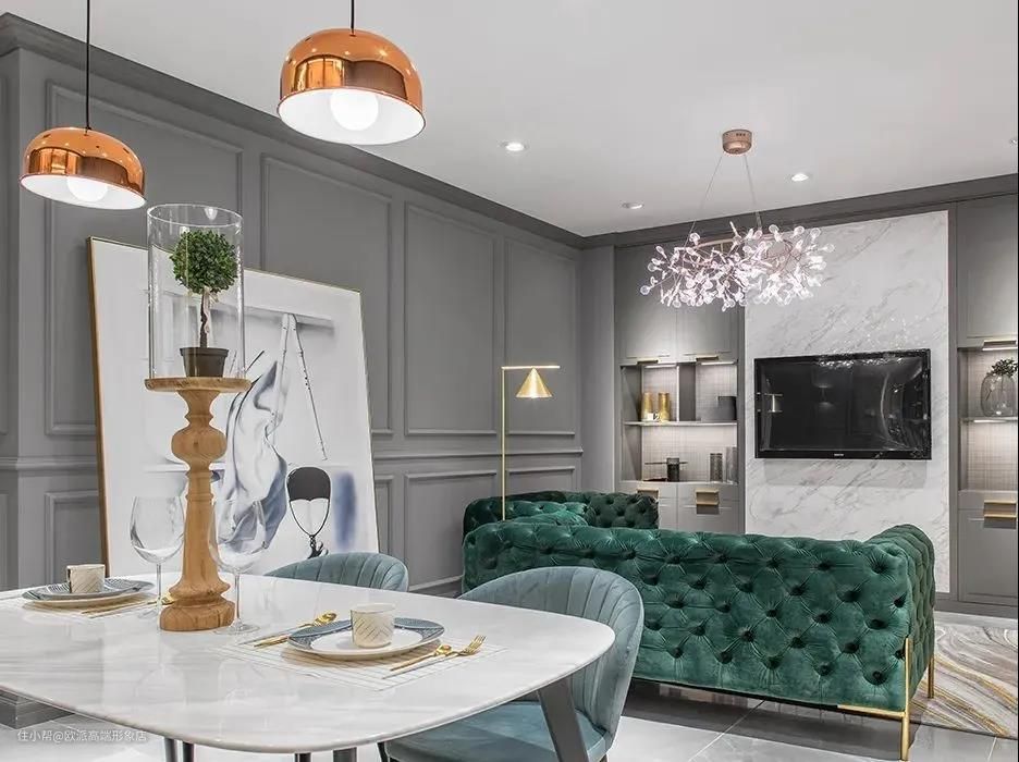 丝绒沙发相对比较个性一点,颜值也很高,色彩多种变化,多用于轻奢或复古风格。