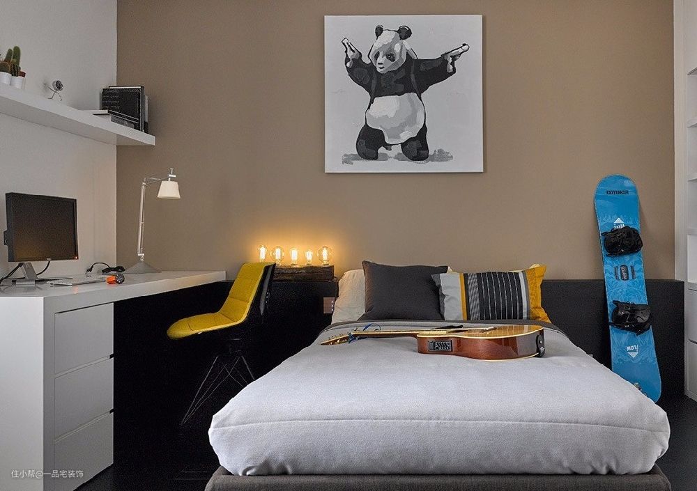简约的艺术壁画及配饰巧妙的把现代简约的风格体现的淋漓尽致,整体给人清新自然的感觉。