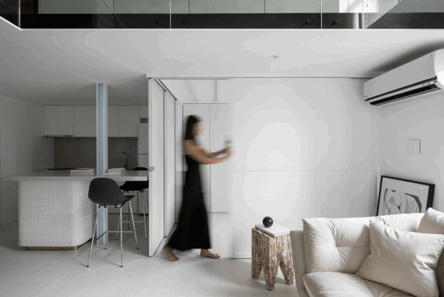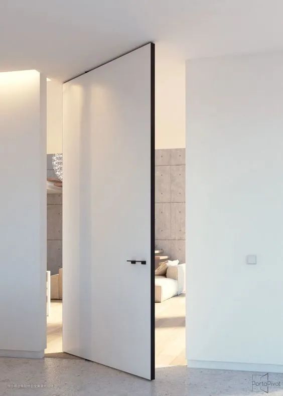 旋转门常见于大户型中,更多为营造特定的空间设计感而存在。在大户型套间的结构中,大门、各种分割区间都可以使用隐形门,兼顾门、隔断塑性等各项功能。