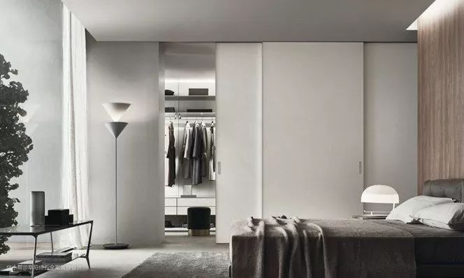 平开式隐形门是家居空间使用率更高的类型。它一般将合页装于门的正面,向内或向外开启,适用于卧室、书房、储藏室等各种功能空间。
