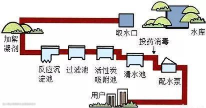 源头水经过层层的处理之后,合格的自来水就诞生在水厂了。
