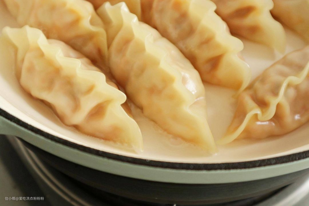 ▼煎个三分钟,时不时翻动一下饺子,把底面煎到金黄