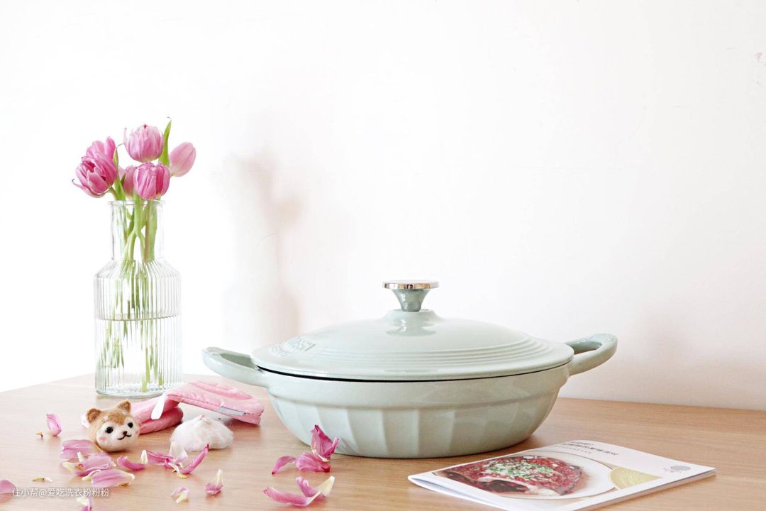 浅山绿+白珐琅的配色足够小清新,口径28cm,锅身嘛却只有6cm高,分明就是为焖焗而生